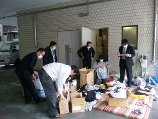 法人会青年部会で物資の仕分け