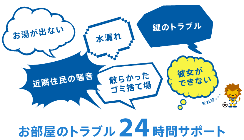 鍵の紛失や深夜の水漏れなど、もしものトラブルや災害による損害を、24時間・365日年中無休でサポートしております。エスエストラストは、入居後も安心して暮らせるよう専門のスタッフがバックアップいたします。 ウキウキするのは玄関まで?彼女ができないのはお部屋のせいかもしれませんよ。新しいお部屋探しもエスエストラストにお任せください。いい部屋紹介します。