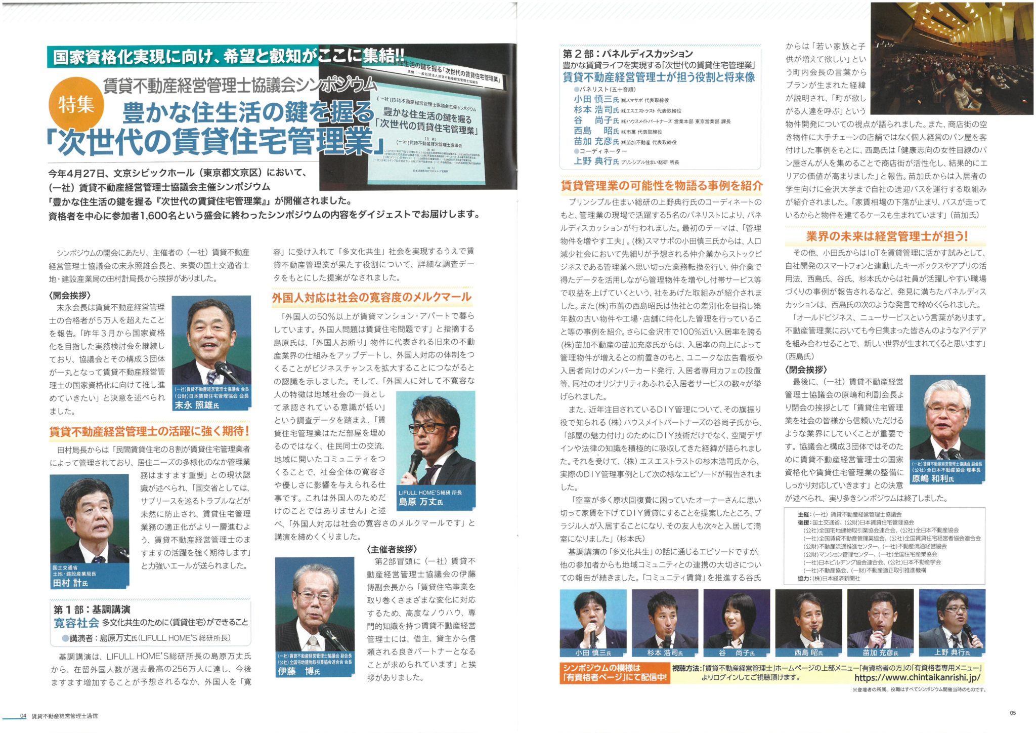 賃貸不動産経営管理士通信に代表杉本が登壇した「賃貸不動産経営管理士協議会シンポジウム」について掲載されました。 | 株式会社エスエストラスト