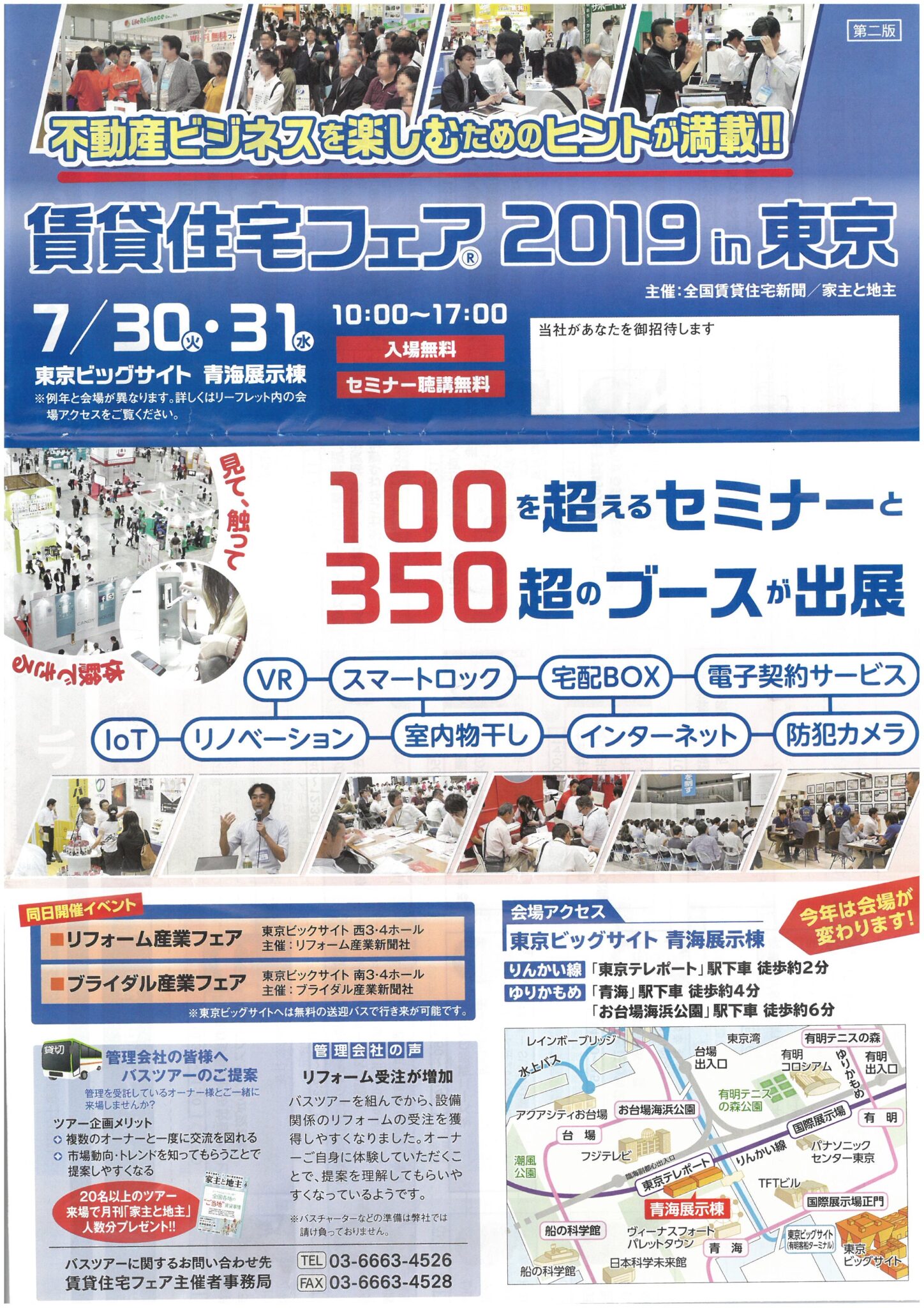 2019年7月30日(火)に東京ビックサイトで開催される賃貸住宅フェアで