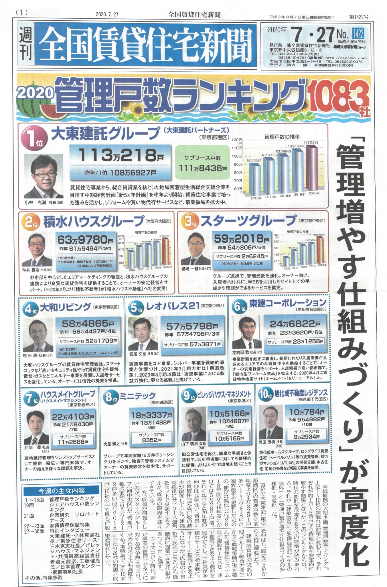 全国賃貸住宅新聞 管理戸数ランキング2020