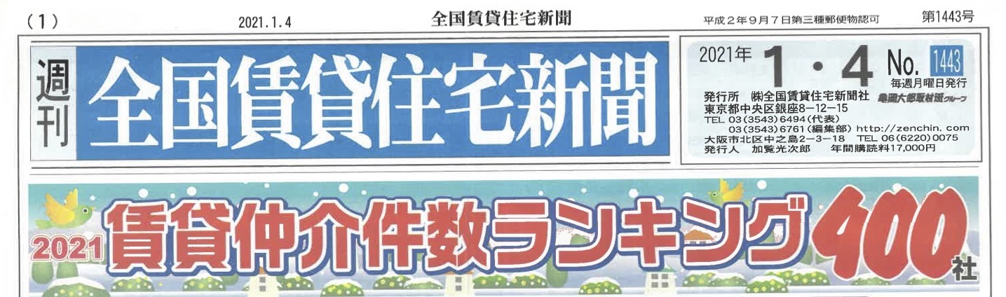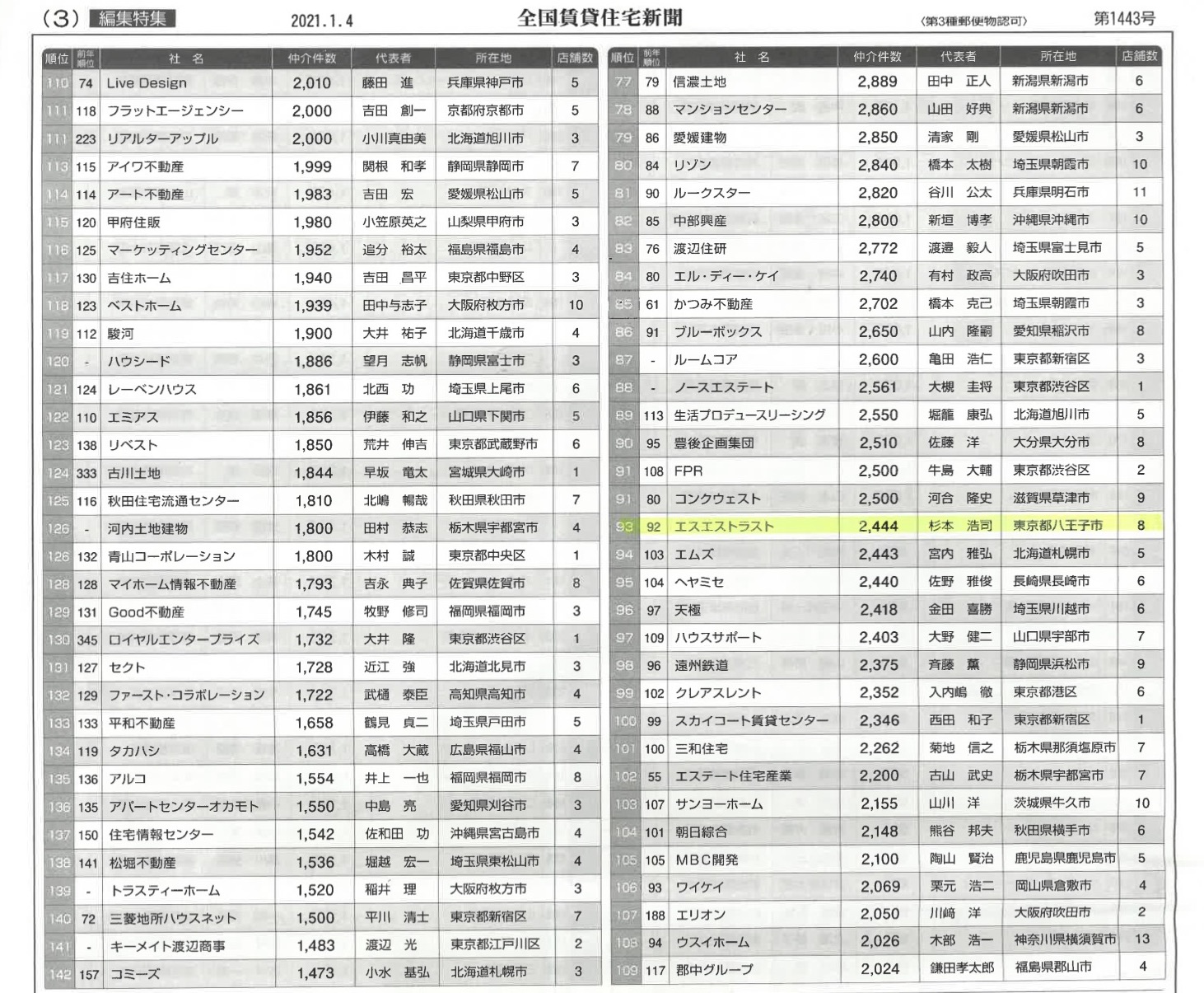 全国賃貸住宅新聞 賃貸仲介数ランキング93位にランクインしました。 | 株式会社エスエストラスト