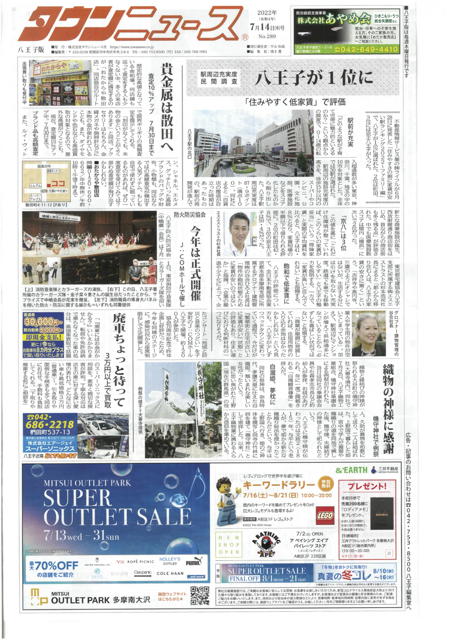 八王子が1位に選ばたことを紹介したタウンニュースの記事に、代表杉本のコメントが掲載されました。
