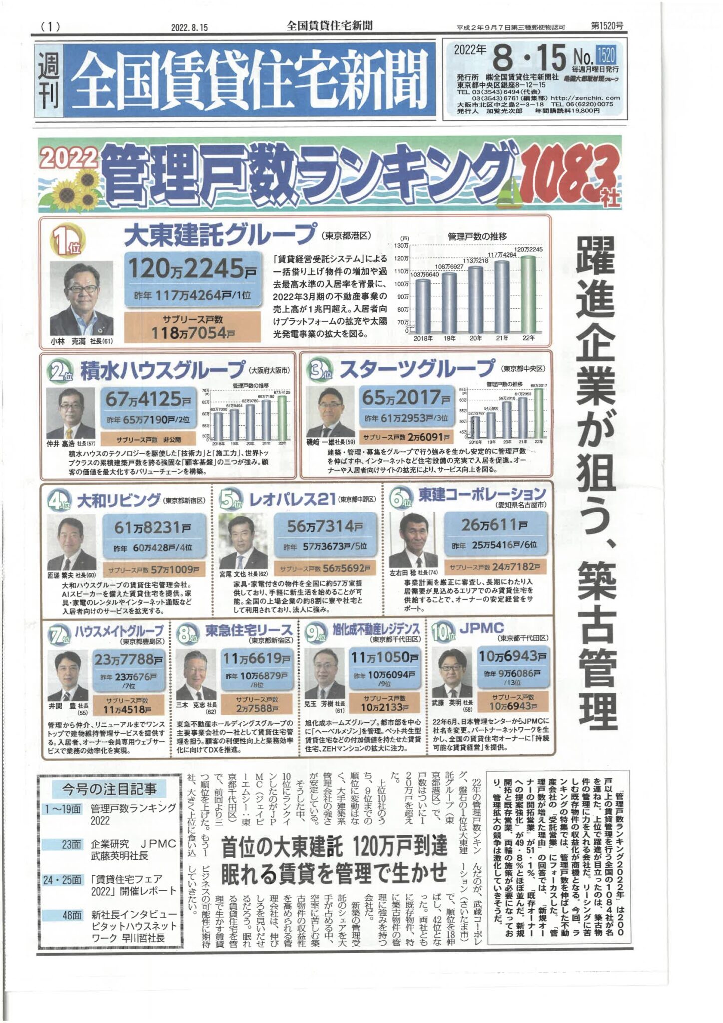 全国賃貸住宅新聞 管理戸数ランキング2022