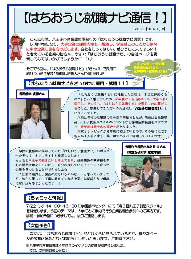 「はちおうじ就職ナビ」を八王子市産業政策課より発行しています!