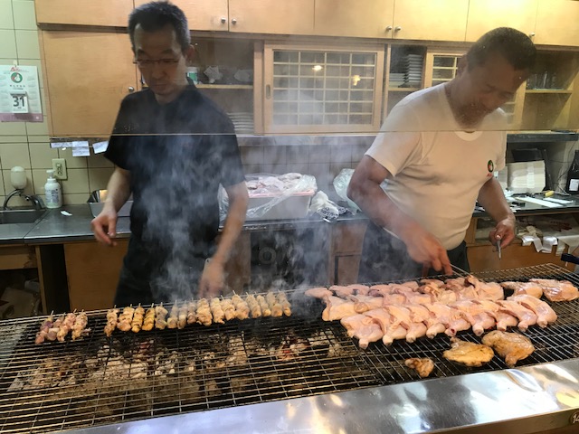 目の前で鶏肉を炭火で豪快に焼いてくれます!
