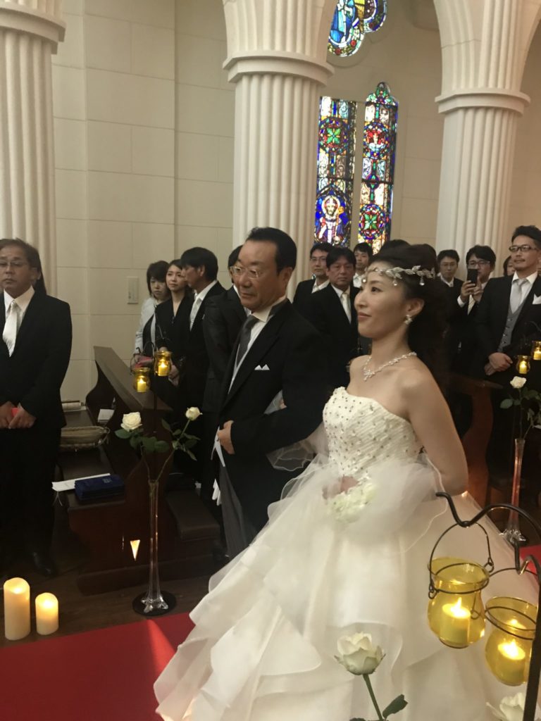 スタッフや友人の結婚式でよく見ていたヴァージンロードの父と娘。