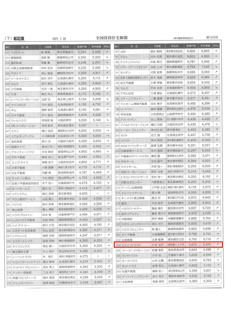2021管理戸数ランキング | 株式会社エスエストラスト
