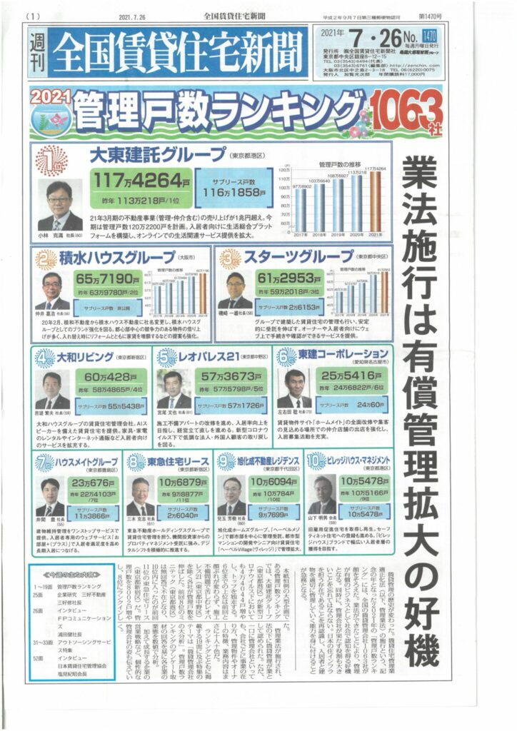 全国賃貸住宅新聞による全国管理戸数ランキング