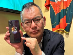 で、NAC5ゴゴモンズでお馴染みの三遊亭鬼丸さんをお招きしました!早速スマホの裏にNossA八王子のシールを貼ってもらいました!