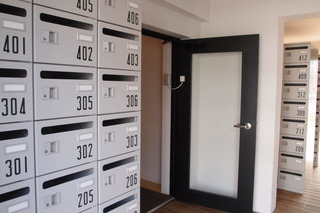 下駄箱がメールBOX、で、この書体!