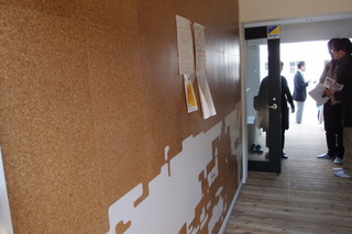 掲示板はコルク材に世界地図、入居者多国籍を連想