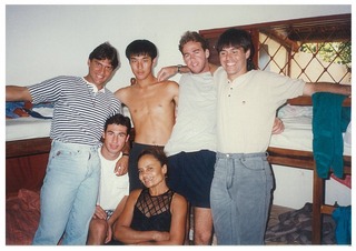 試合の遠征中の写真、右となりのセアラは当時10代でしたが、