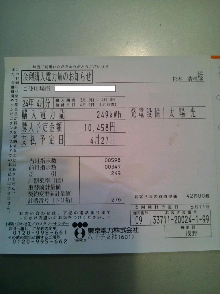 で、売電が「10,458円」!!!!!!!!!!