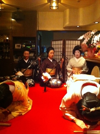 手を2回ぐらい叩いて芸者がお座敷に入ってくるのを見てましたが、