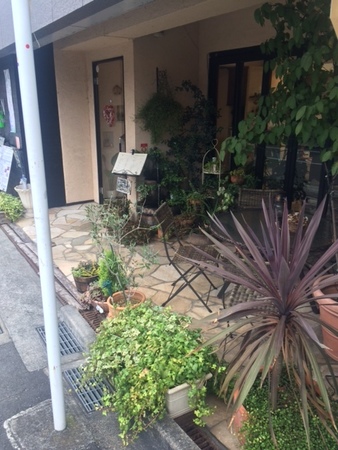 緑があって、壁の前はウェルカムボードなどでホスタピリティがあって