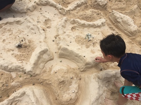 ヤドカリを500匹以上つかまえて、砂浜ではヤドカリ天国とか王国とか