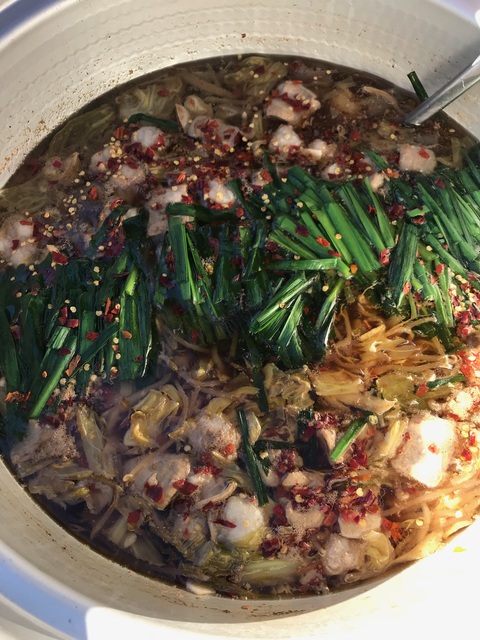 そして締めは、BBQプロのパパが博多直送のもつ鍋!