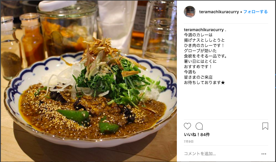 寺町蔵カレーさんのInstagram貼らせていただきます。