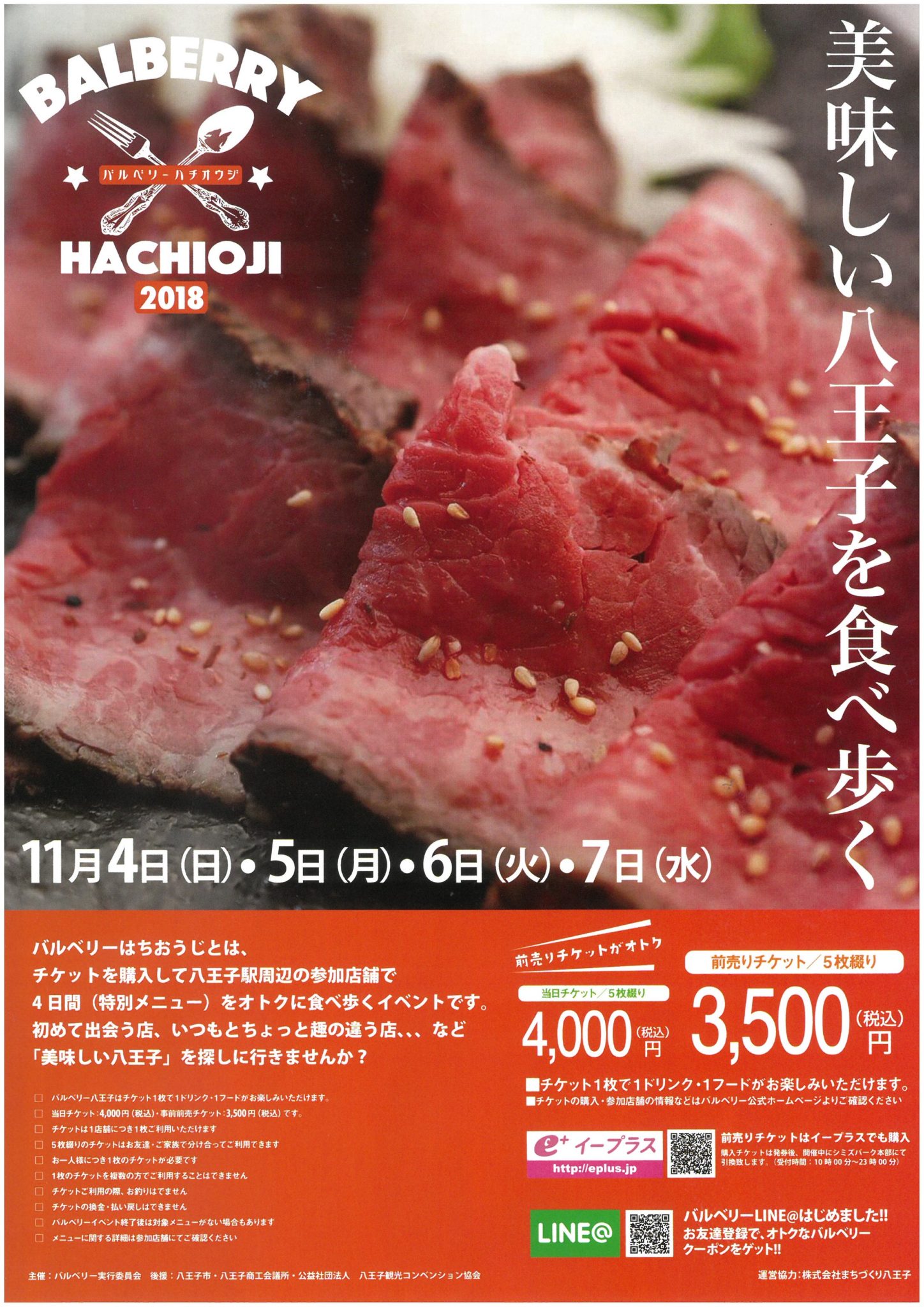 11月4 日(日)〜7日(水)の4日間、“バルベリーはちおうじ”が開催されます♪