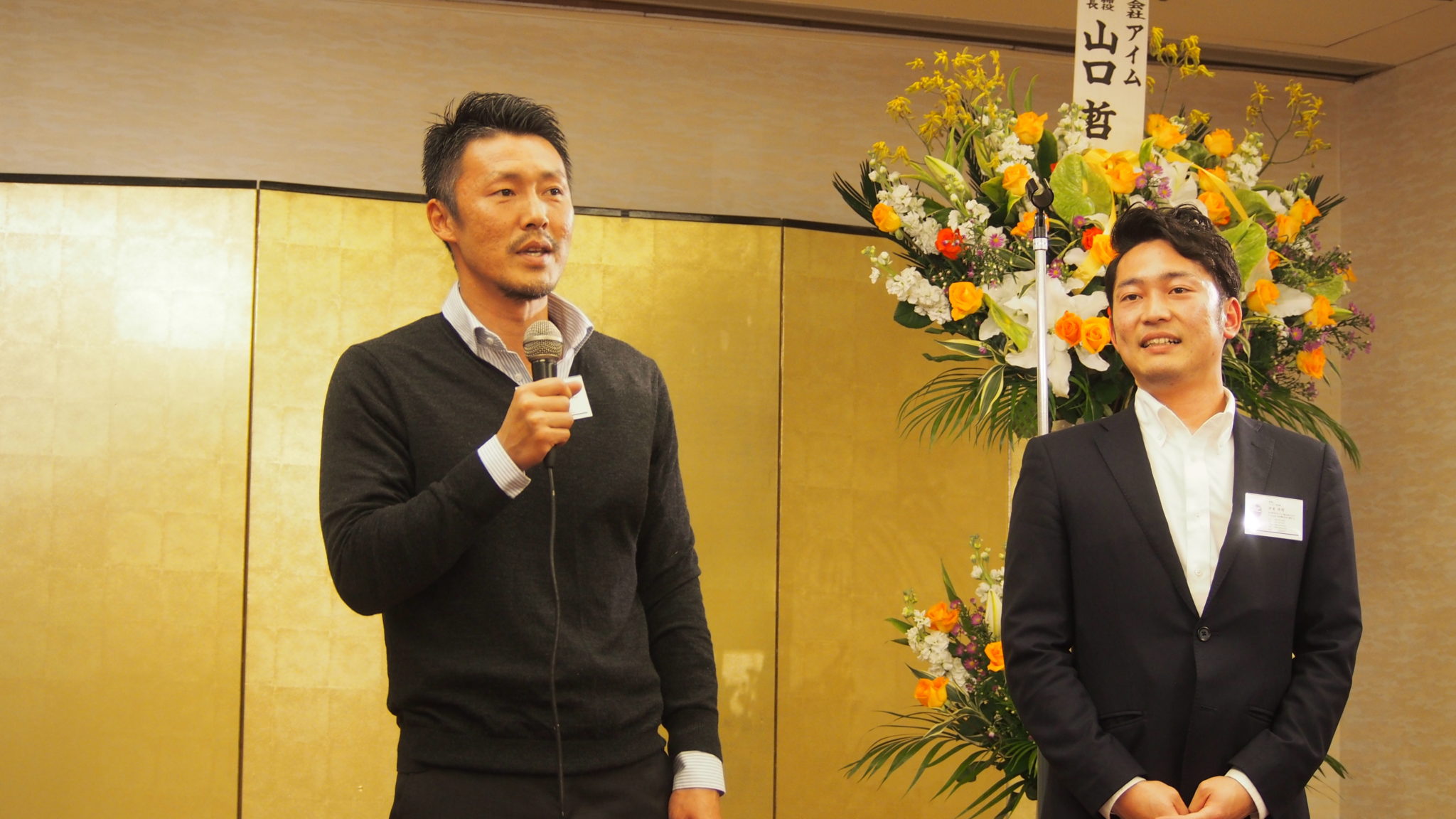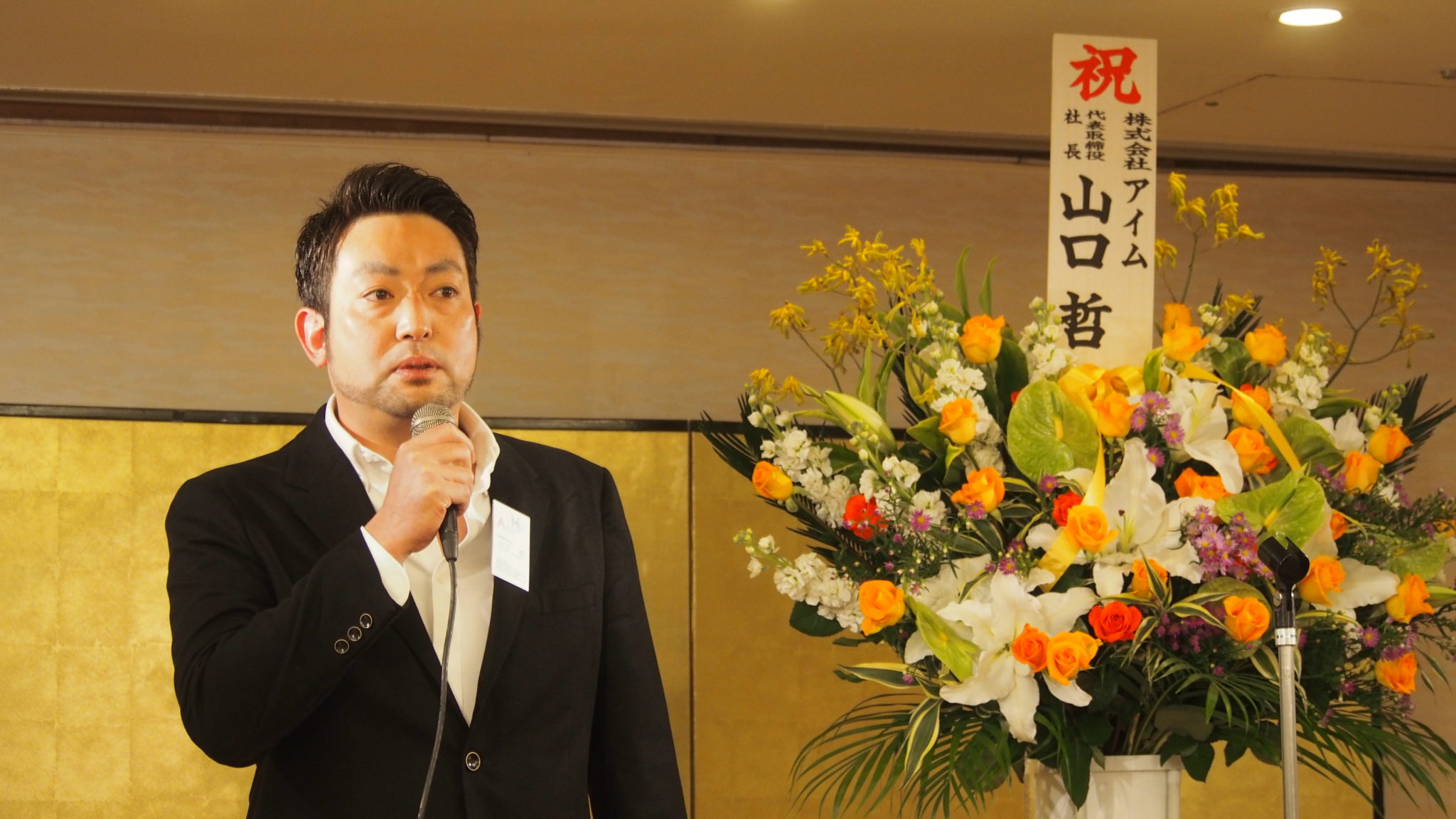 乾杯は、素敵なお花を贈ってくださった株式会社アイムの代表取締役社長の山口様より。