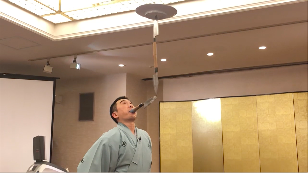 そして、メインイベントは、翁家 和助 (おきなや わすけ)さんによる太神楽曲芸!