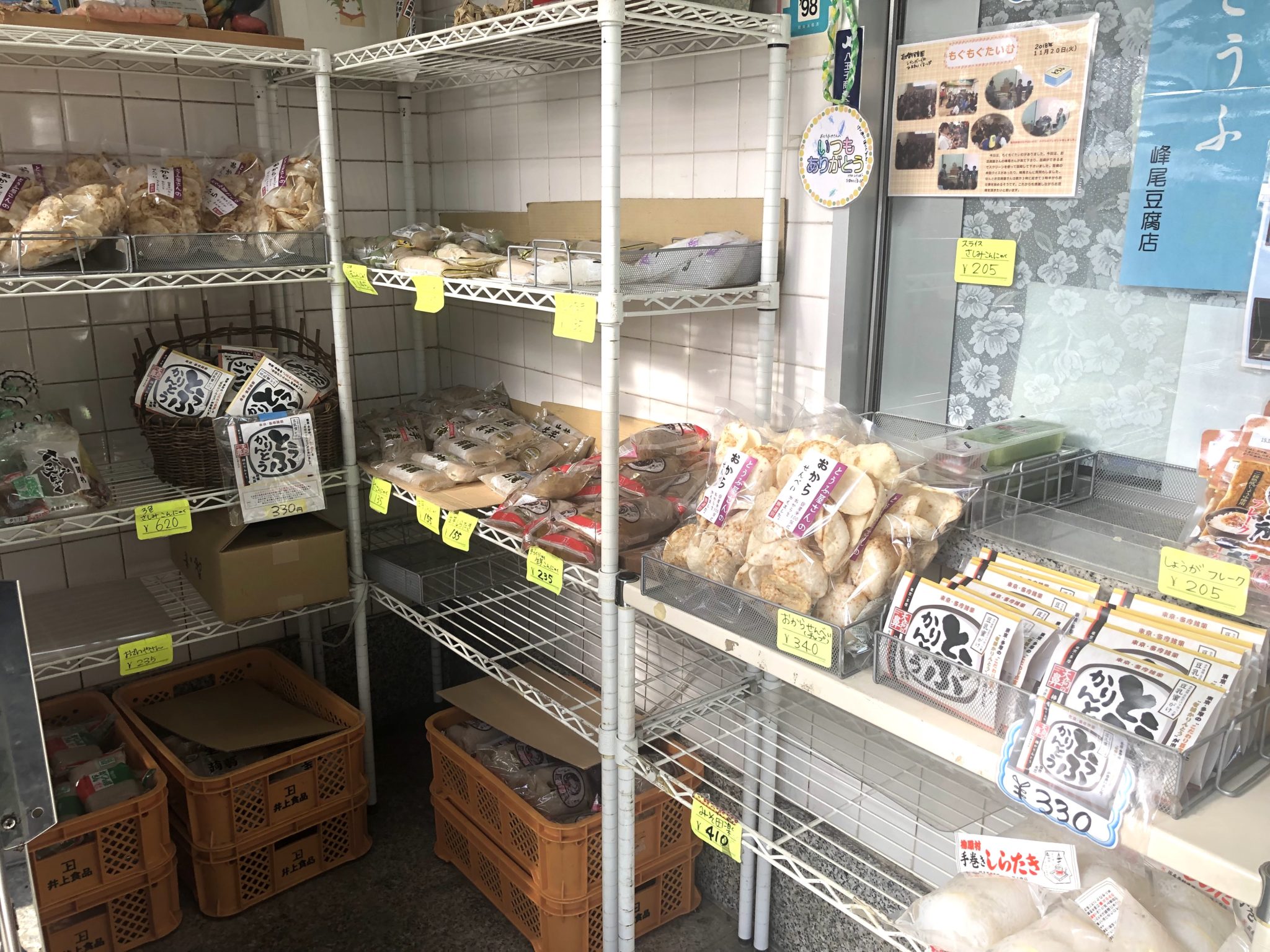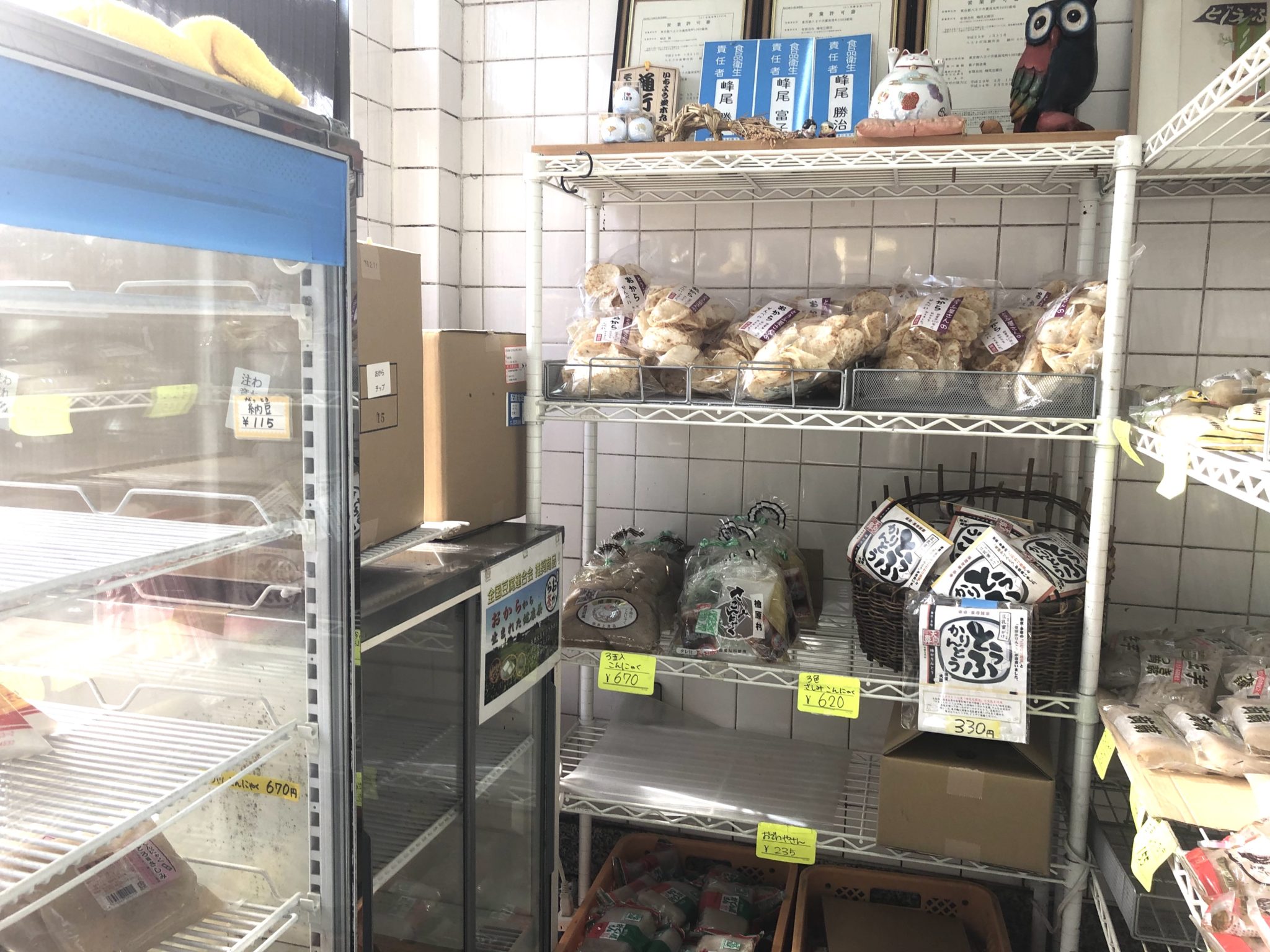 店内には、お豆腐で作られているお菓子の他、檜原村から仕入れているこんにゃくや、納豆も売られています。