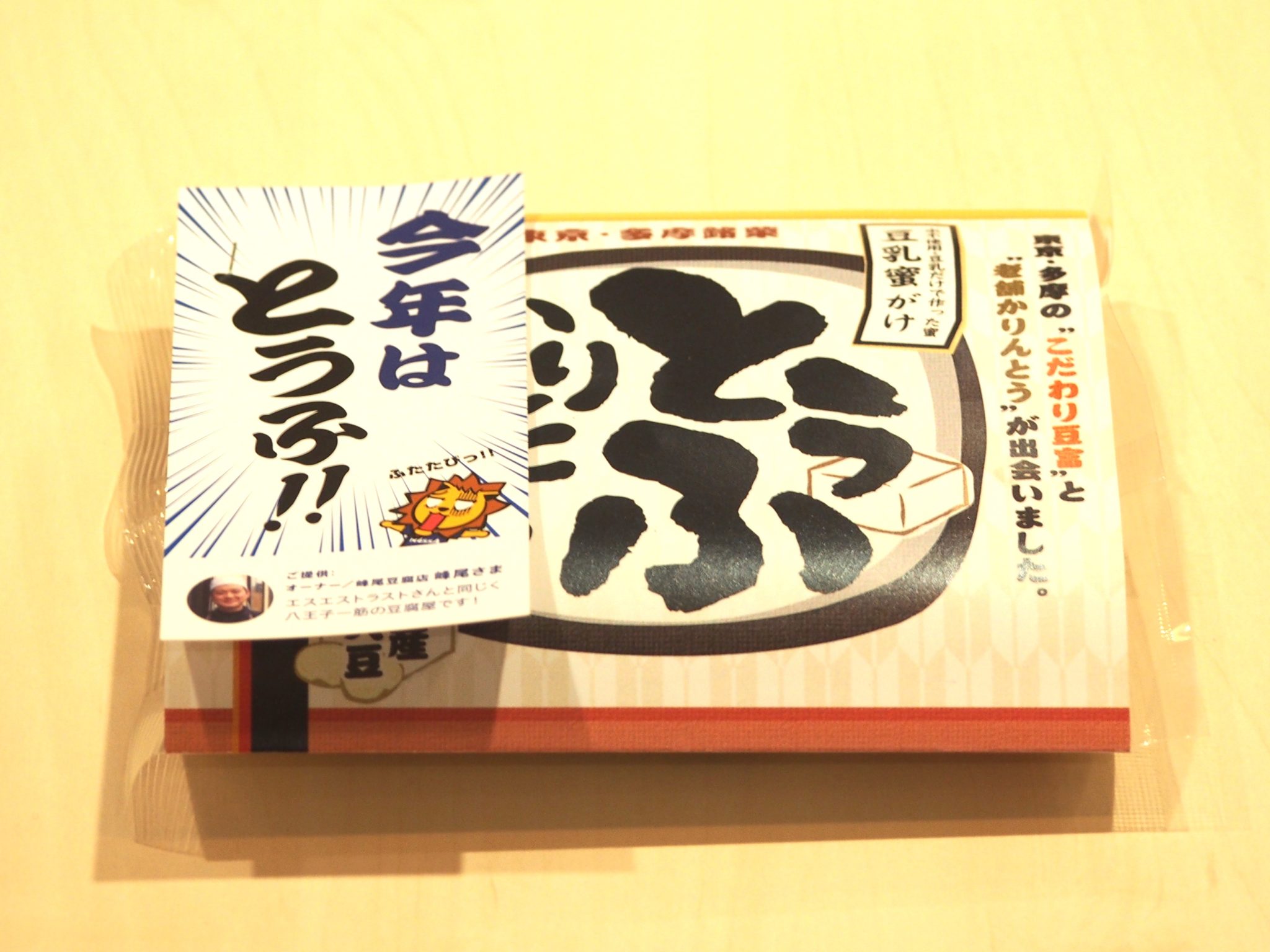 今年のお年賀は、3年前に大好評だったするさし豆腐でお馴染みの「峰尾豆腐店」の“おとうふかりんとう”にしました。