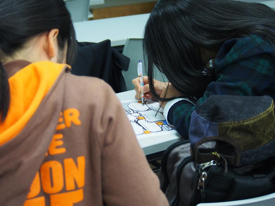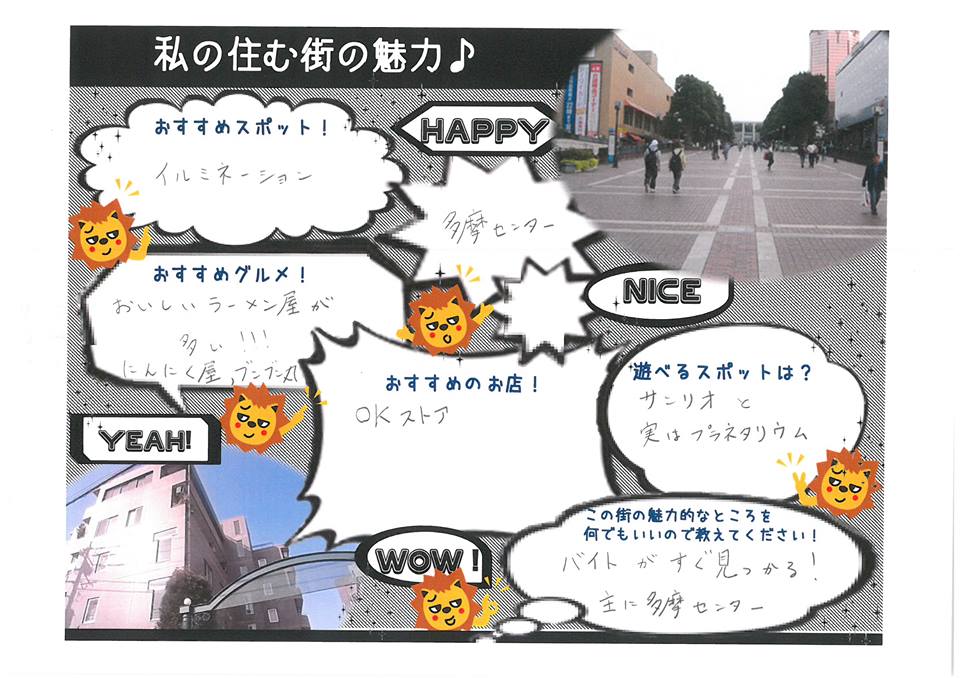 ワーク形式で学生さんの住んでいる地域の魅力を書いてもらいました!