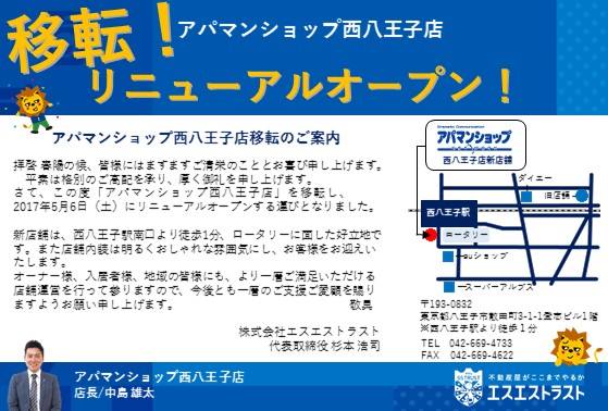 2017年5月6日(土)アパマンショップ西八王子店が移転することになりました!