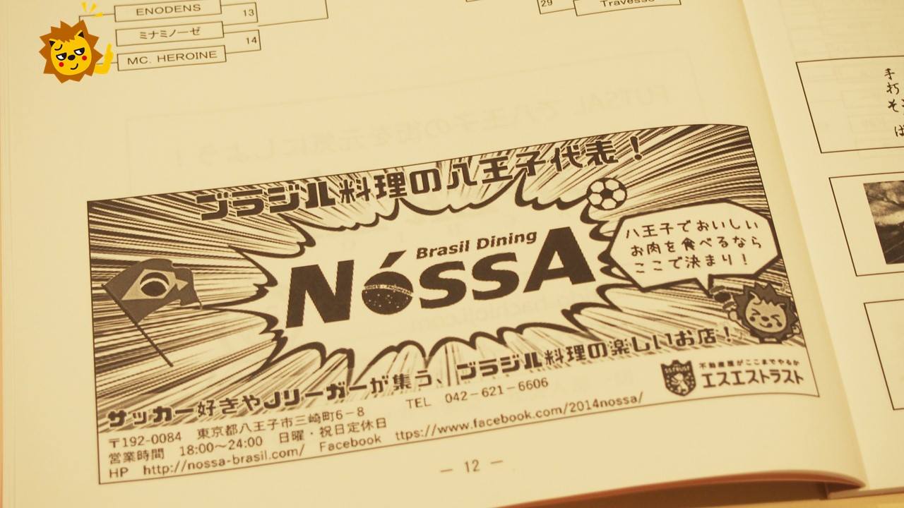 ブラジルダイニングNossAの広告の上には“ミナミノーゼ”というチームが!