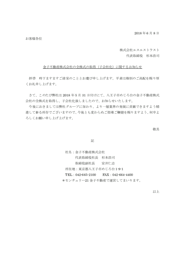 6月1日より八王子市めじろ台の地域に根ざした不動産屋さん“金子不動産”が、
