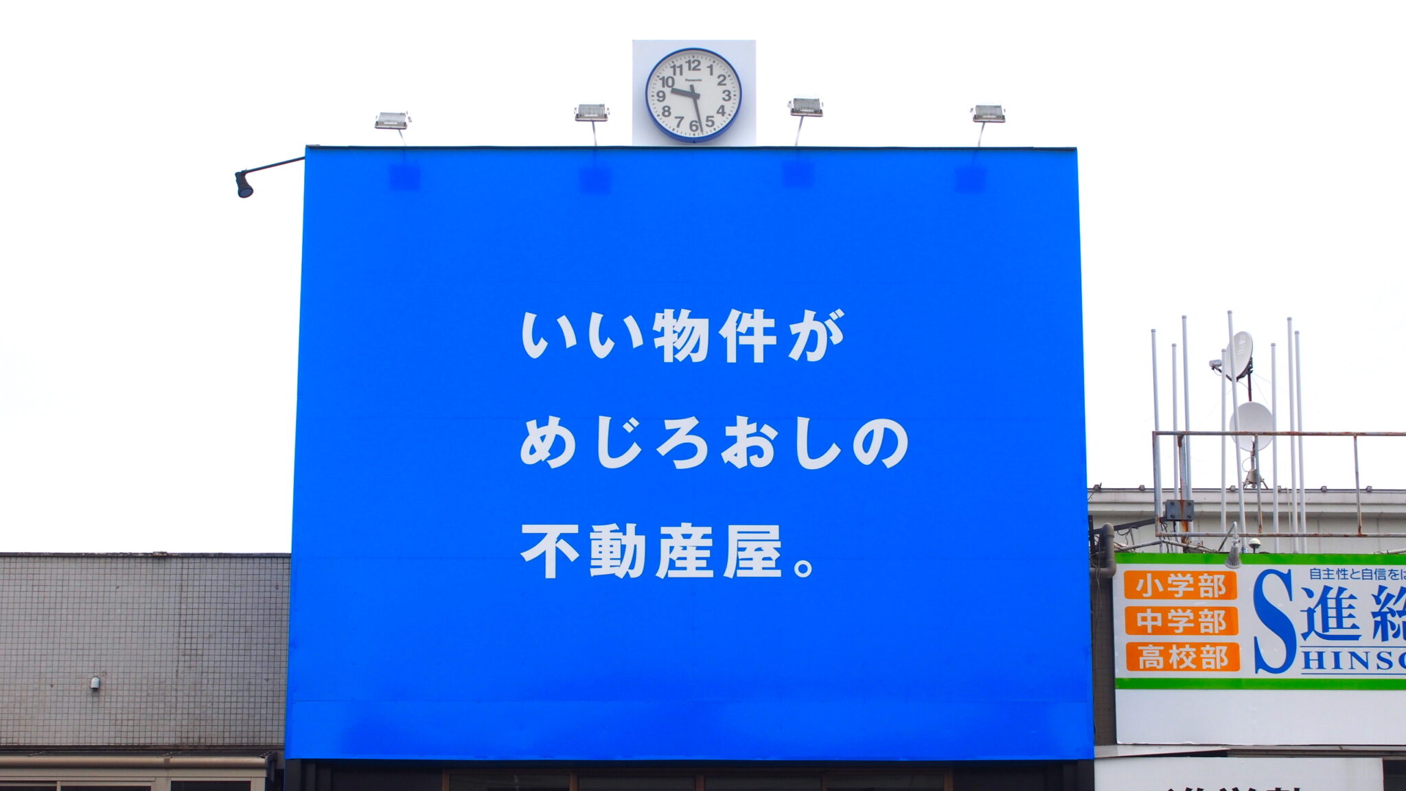 そして、「いい物件がめじろおしの不動産屋。」の看板!