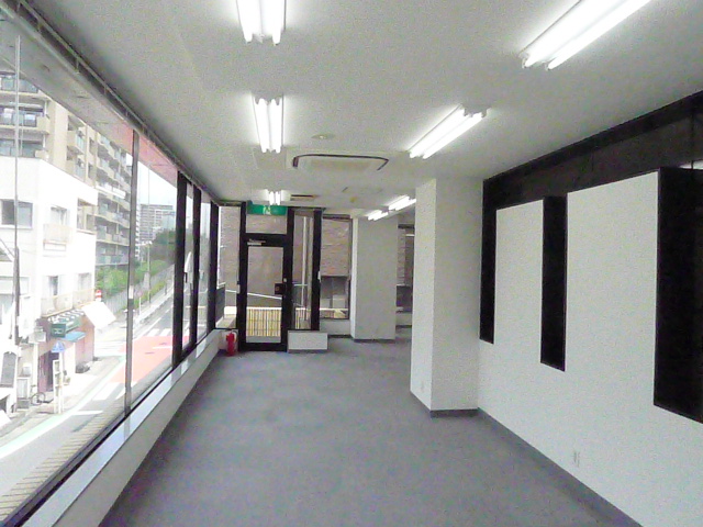 室内。道路側と北側に窓が大きく取り付けてあり、明るく快適です。