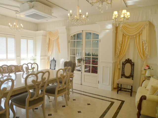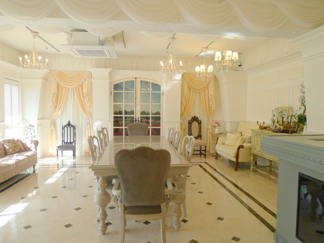 こちらにはミニキッチンやカウンター、ダイニングを備えているので、結婚式の2次会や記念日の会合などパーティ利用にも最適ですね。こんなティーパーティにお呼ばれしたら、気分はすっかり男爵と貴婦人! 仕草の一つ一つまで変わってしまいそう。。。