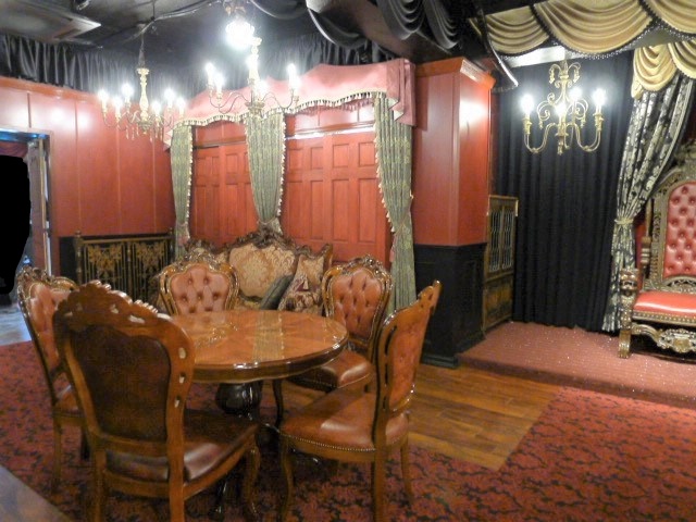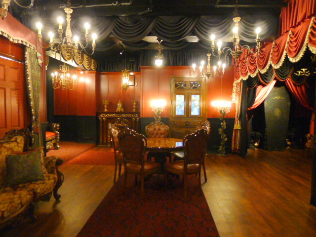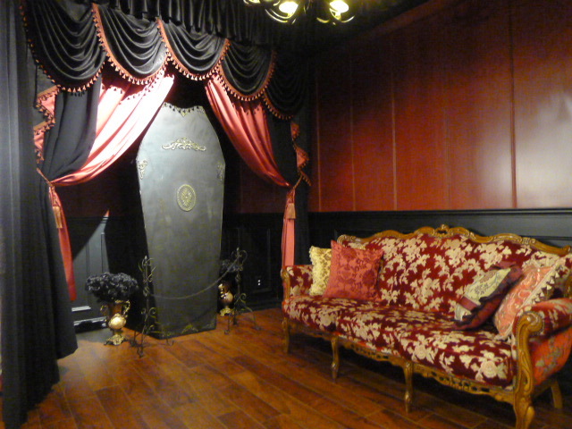 2階の『シュヴァルツヴァルトの獣』は黒を基調としたダークでゴシック感漂う夜の古城のイメージ。奥の部屋にはヴァンパイアが眠る棺もあり、ファンタジーの世界が広がります。