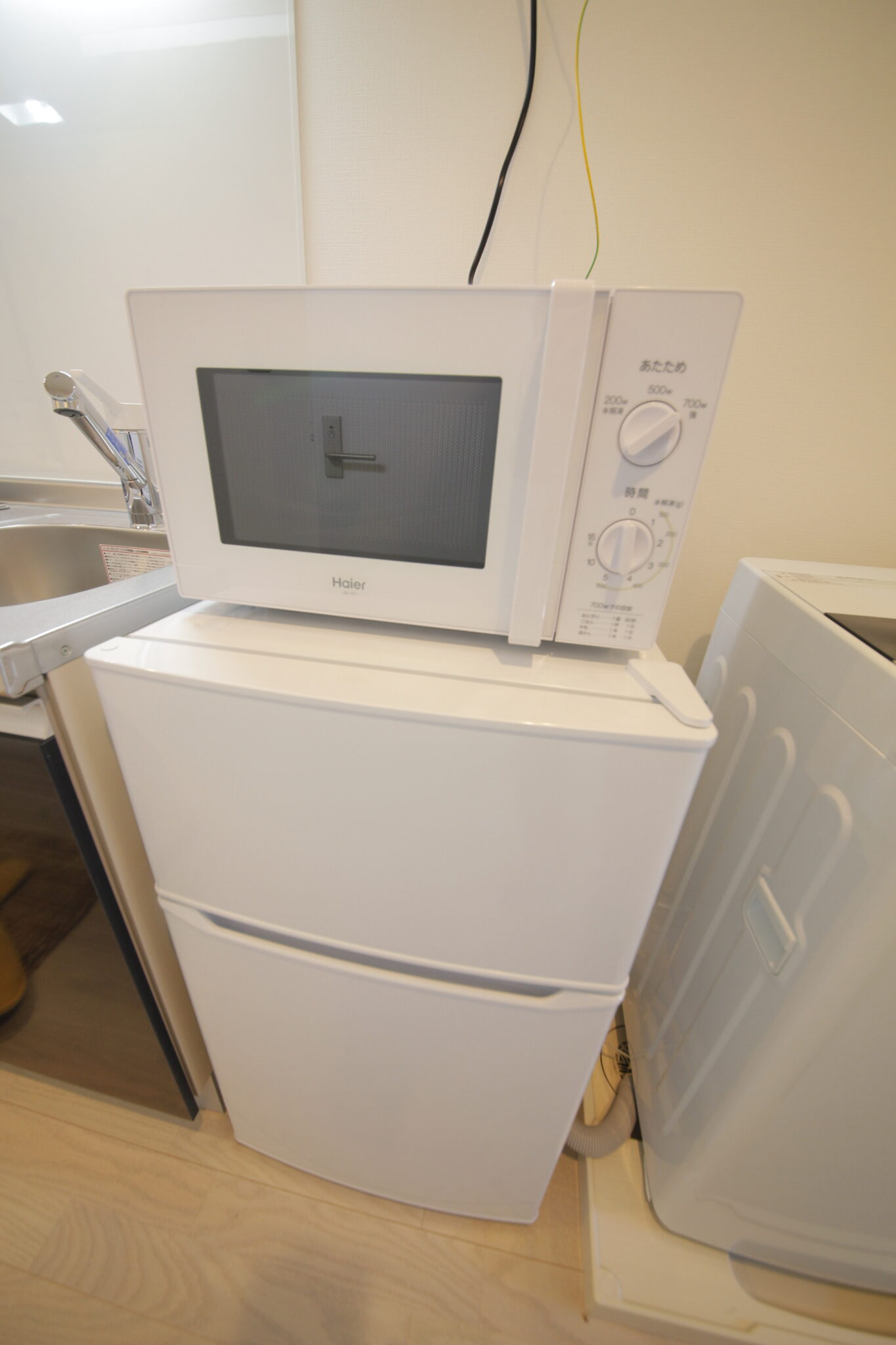 エアコンはもちろんのこと、洗濯機、冷蔵庫、電子レンジも付いています!