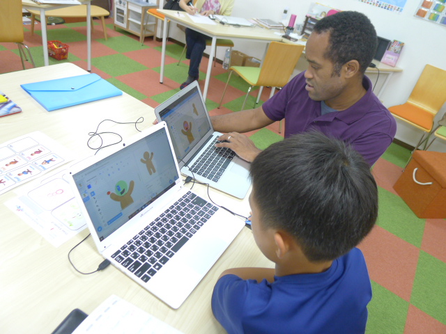 〝英語でも日本語でも学べるプログラミング教室″として小学1年生~中学3年生向けのプログラミング教室→