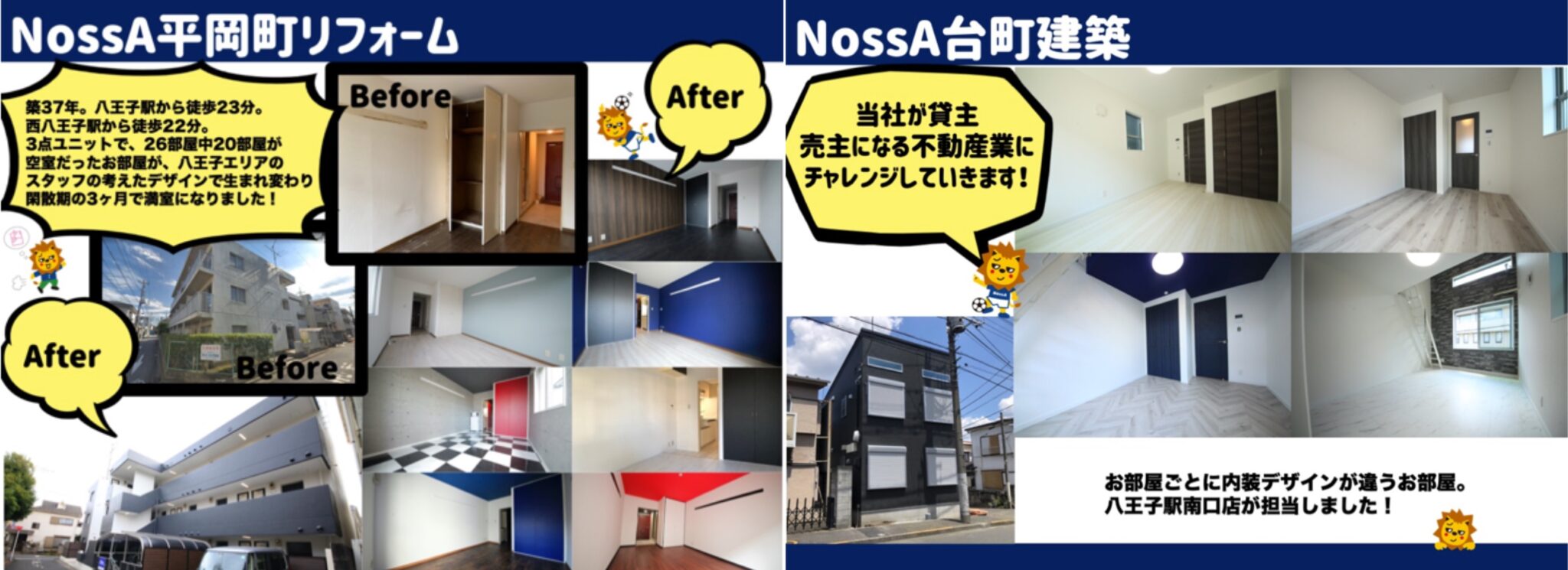 NossA平岡町の購入と、NossA台町を建築し、それぞれの物件のエリア担当店舗のスタッフがデザインを考えました。