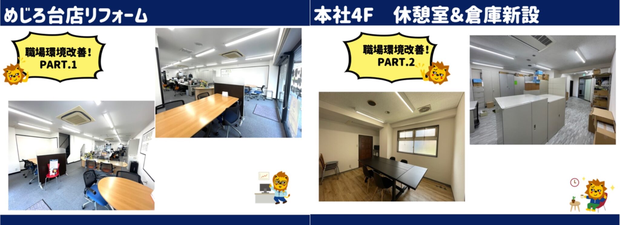 エスエストラストめじろ台店のリフォームと、本社を増床し休憩室と倉庫室を作ることで、オフィスも広く快適になりました!