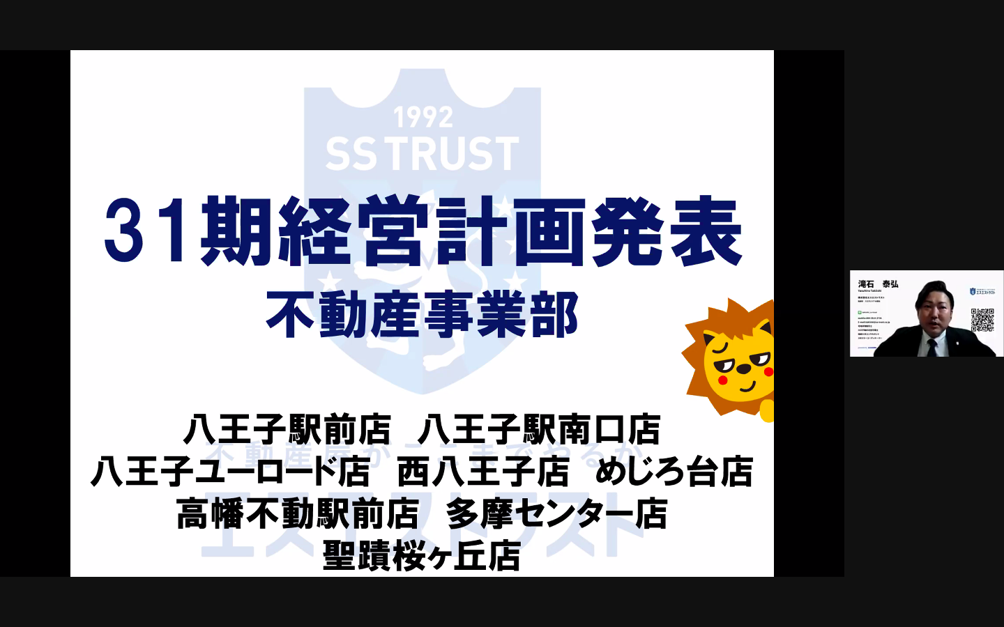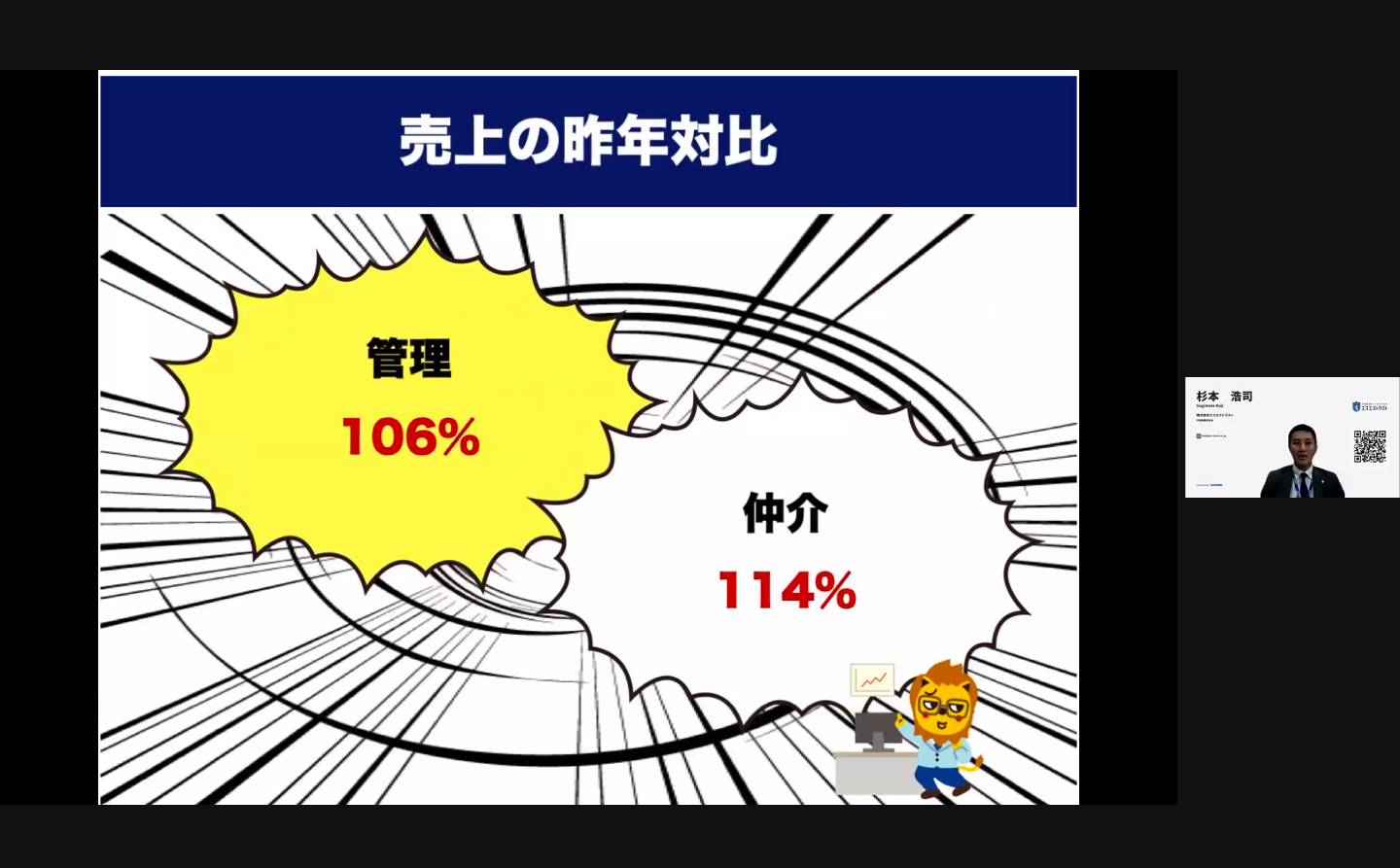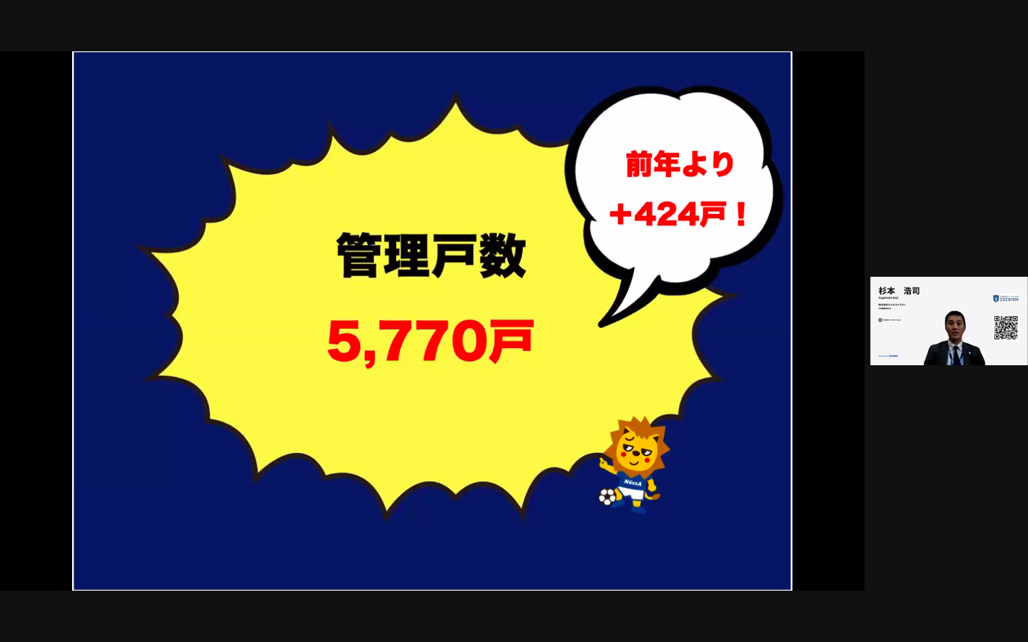 この後は、今期の戦略やヴィジョンなどのお話から、売上げ・管理戸数などの具体的な数字と内容のご報告をさせていただいた後、さらに各部署から詳細を発表致しました。