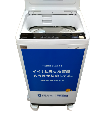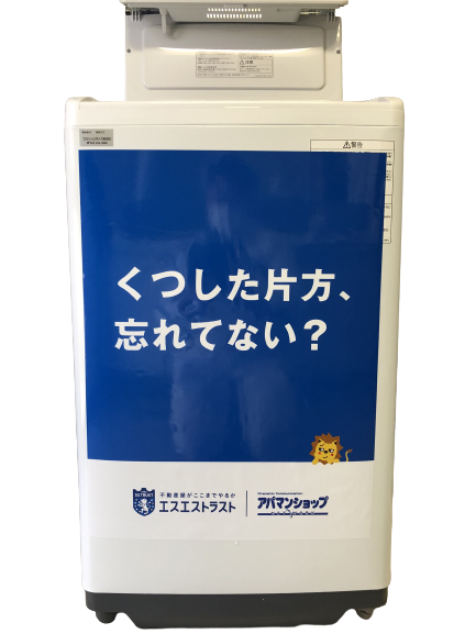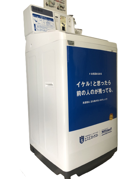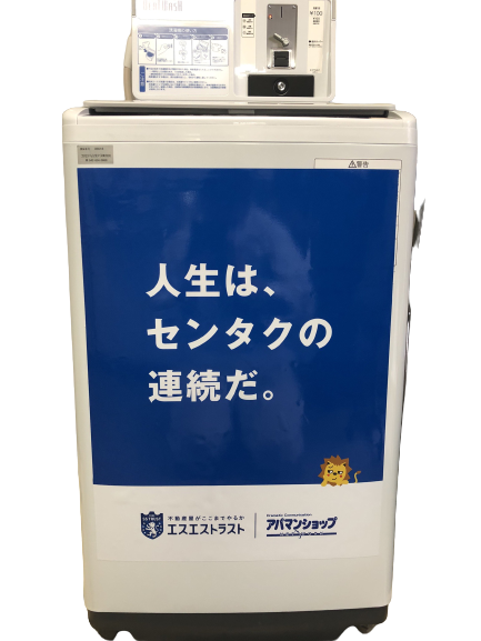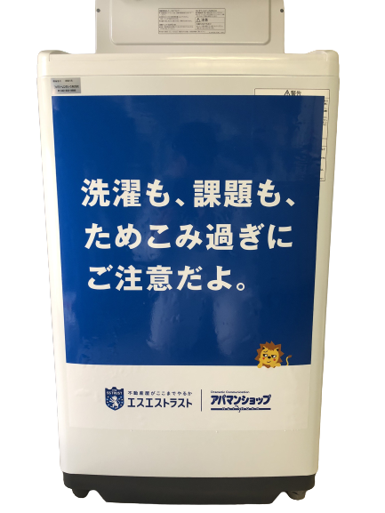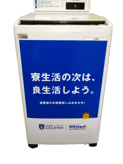 八王子市内の大学の寮に、おもしろ看板風のランドリー広告を設置させていただきました!