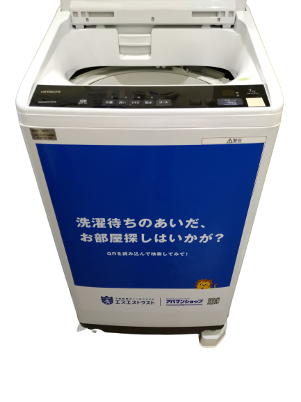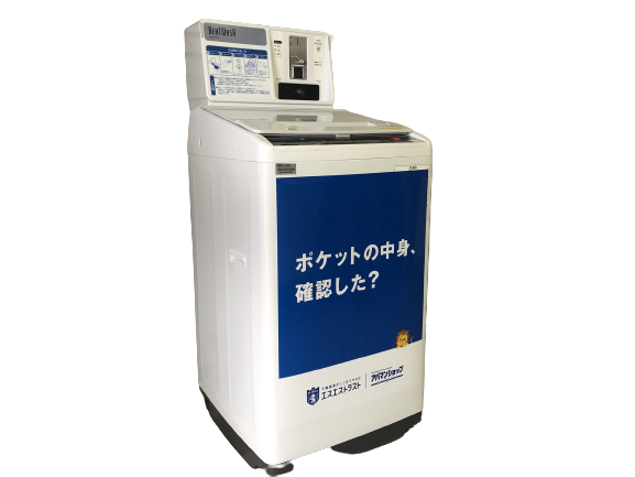 八王子市内の大学の寮に、おもしろ看板風のランドリー広告を設置させていただきました!