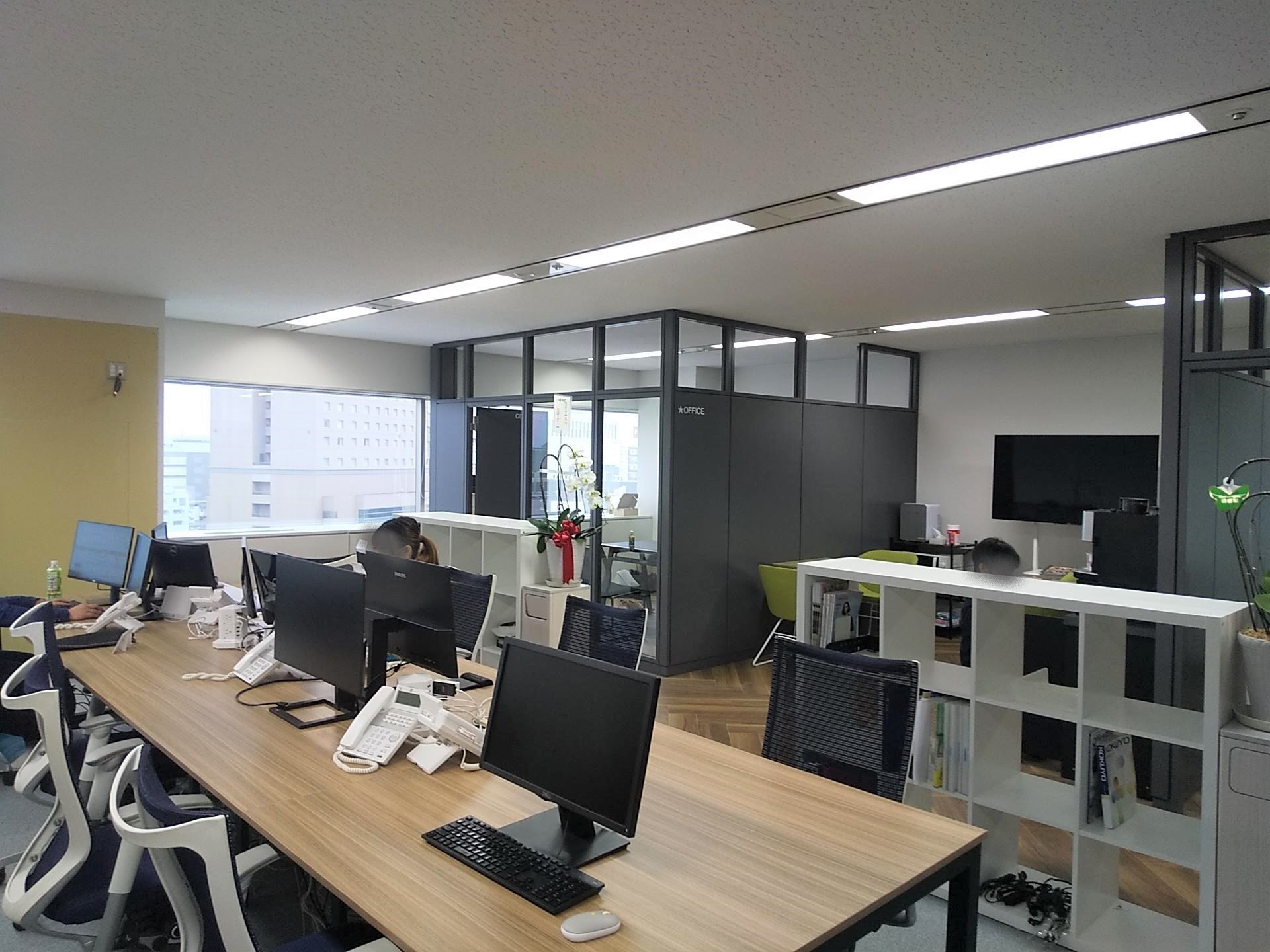 予定よりグレードアップした理由としては、社員のモチベーションのアップや働きやすさを基本として、いろいろな価値観を持つ人材に集まってほしいという想いに背中を押され、最終的にこちらの物件に決めてくださったようです。果たして写真の通り快適な室内で、働くモチベーションが上がりそうなオフィスに仕上がっています。