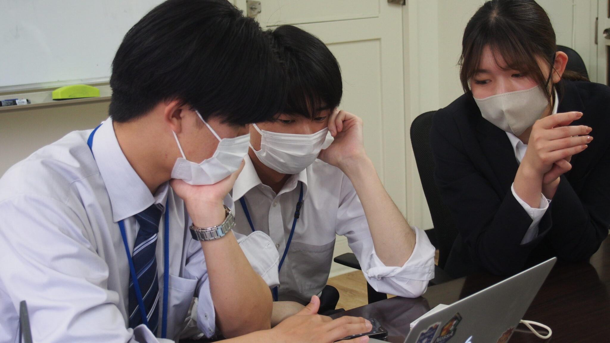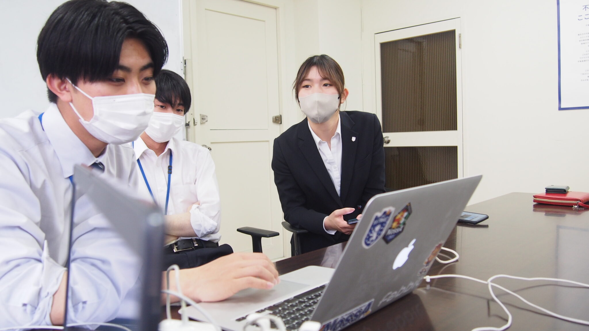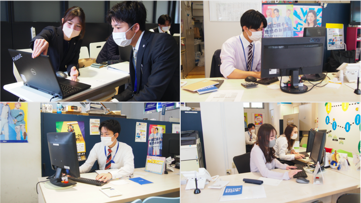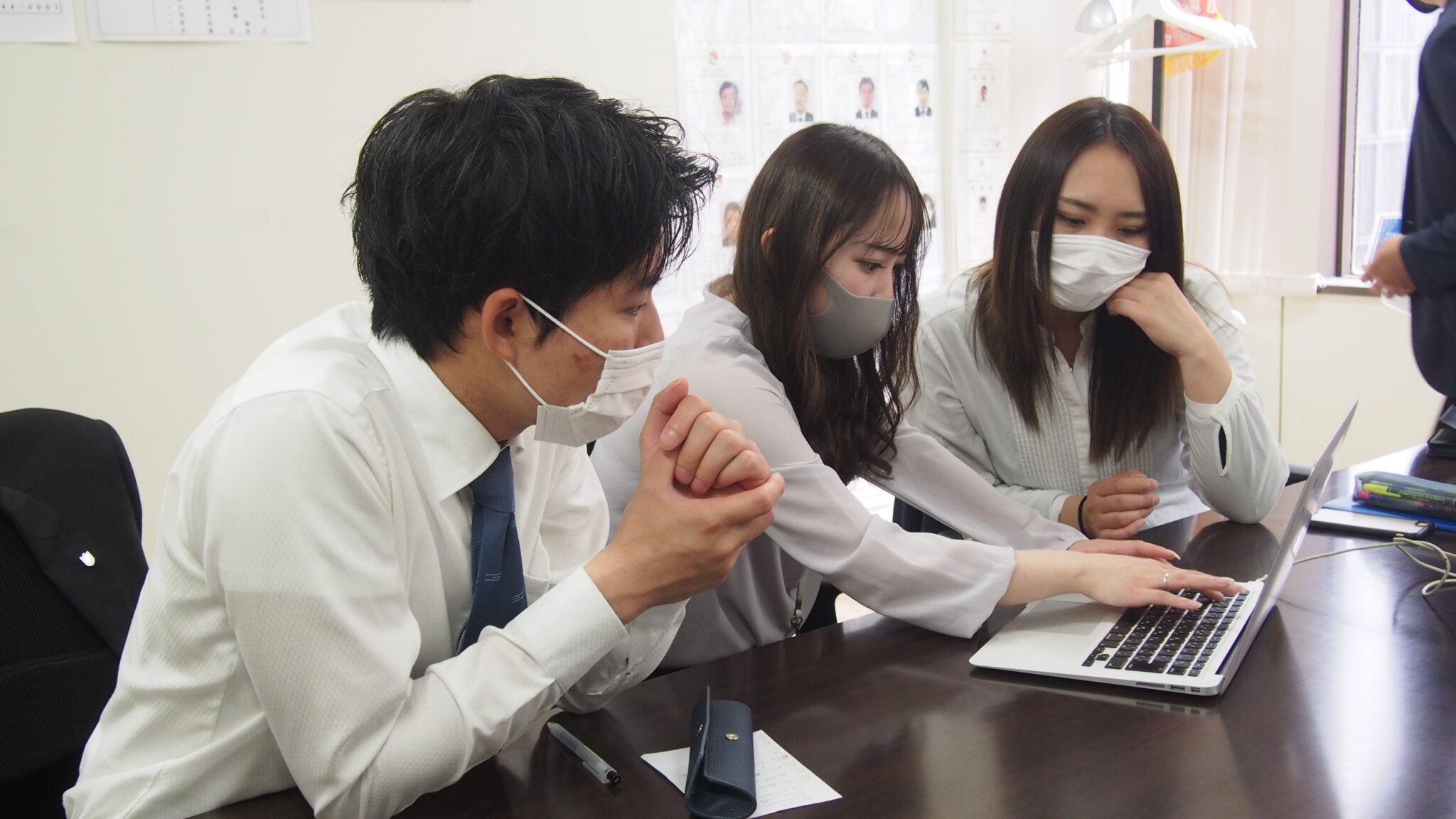先輩社員にヒントをもらったり、パソコンで調べていざ出発!