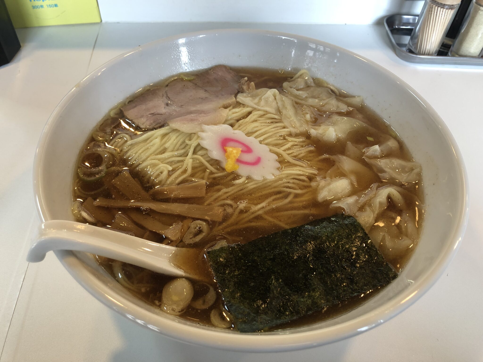 いただいた「ワンタンメン」は、やや硬めの麺に歯ごたえの良いメンマ、