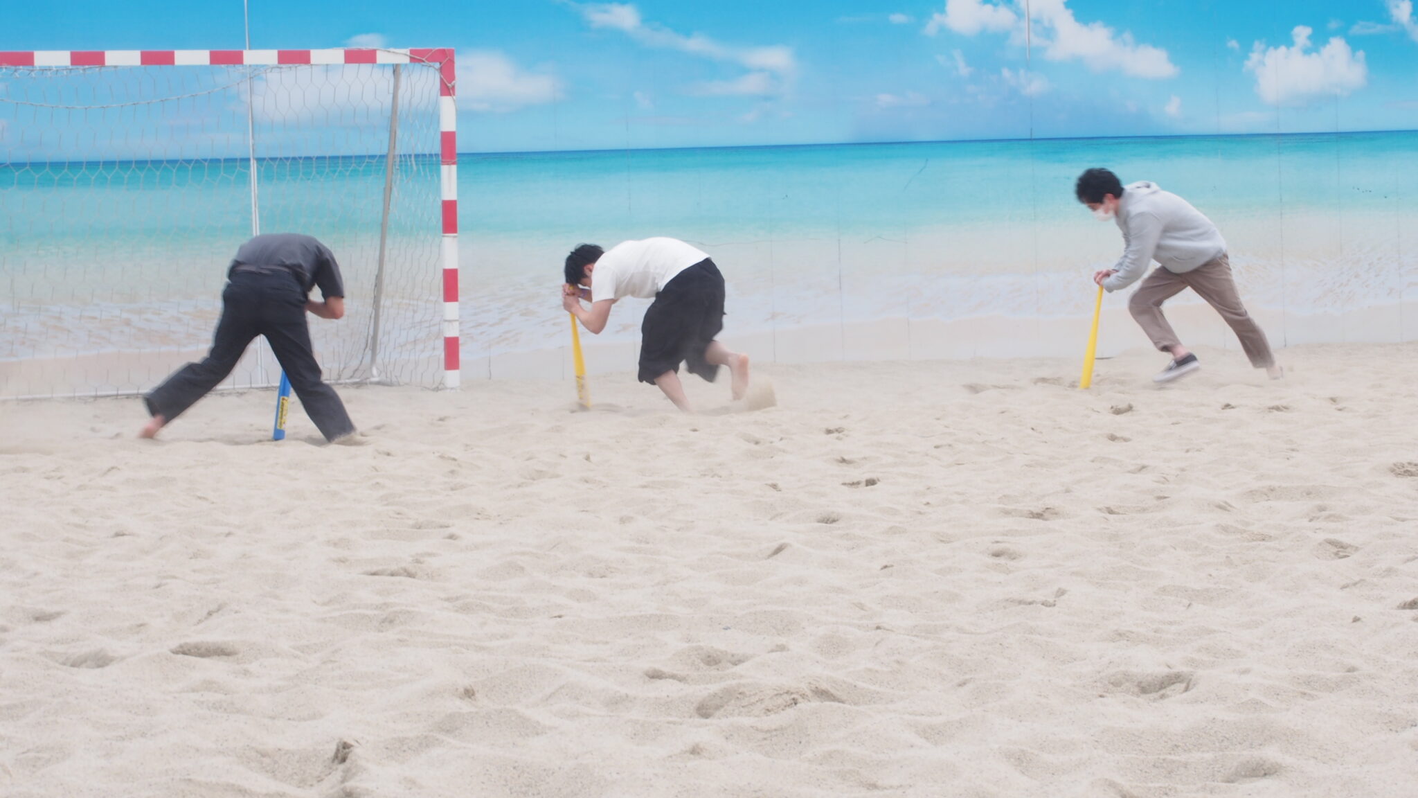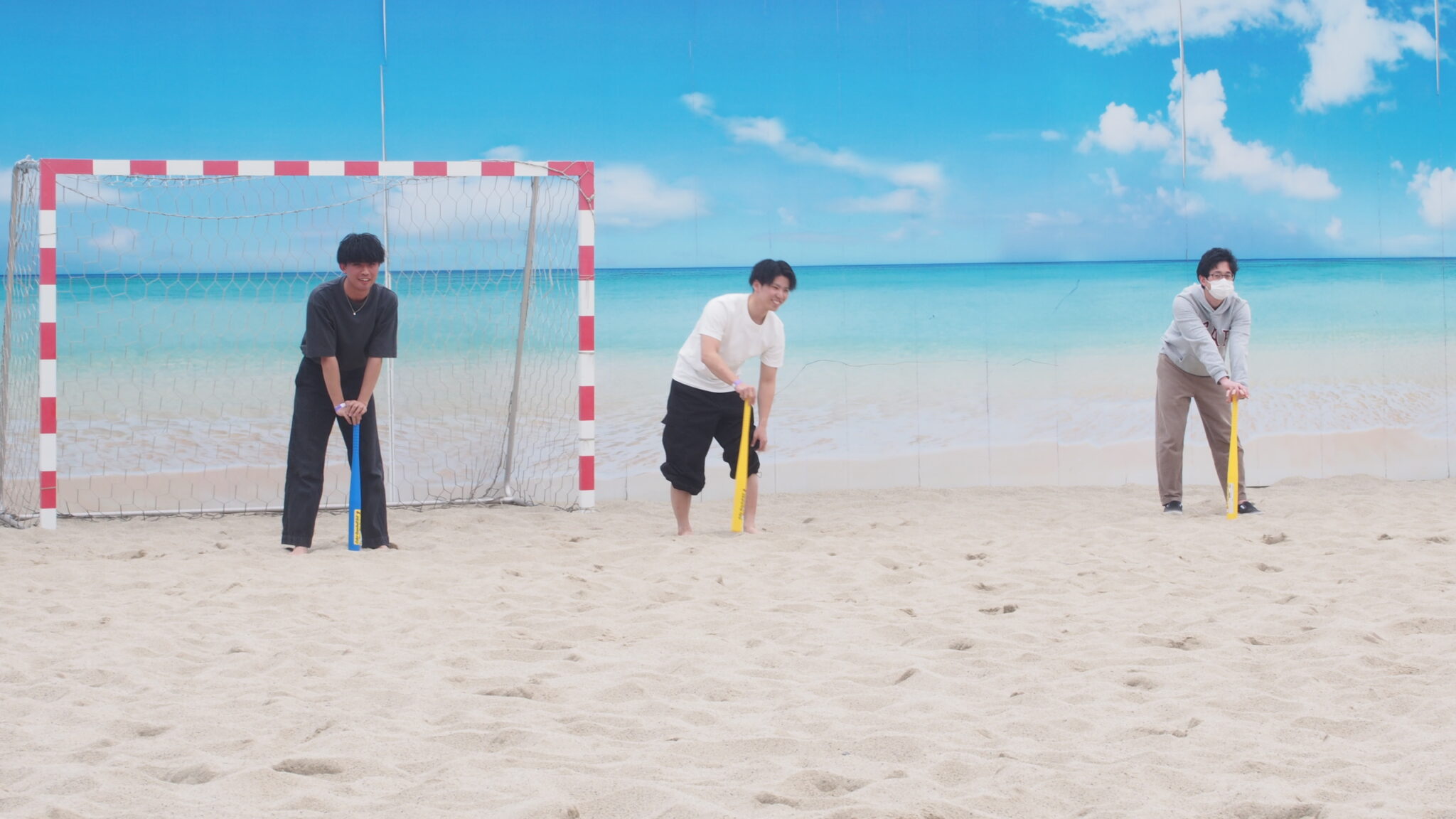 目が回って真っ直ぐ走れなかったり、転んだりと大盛り上がりの企画でした。