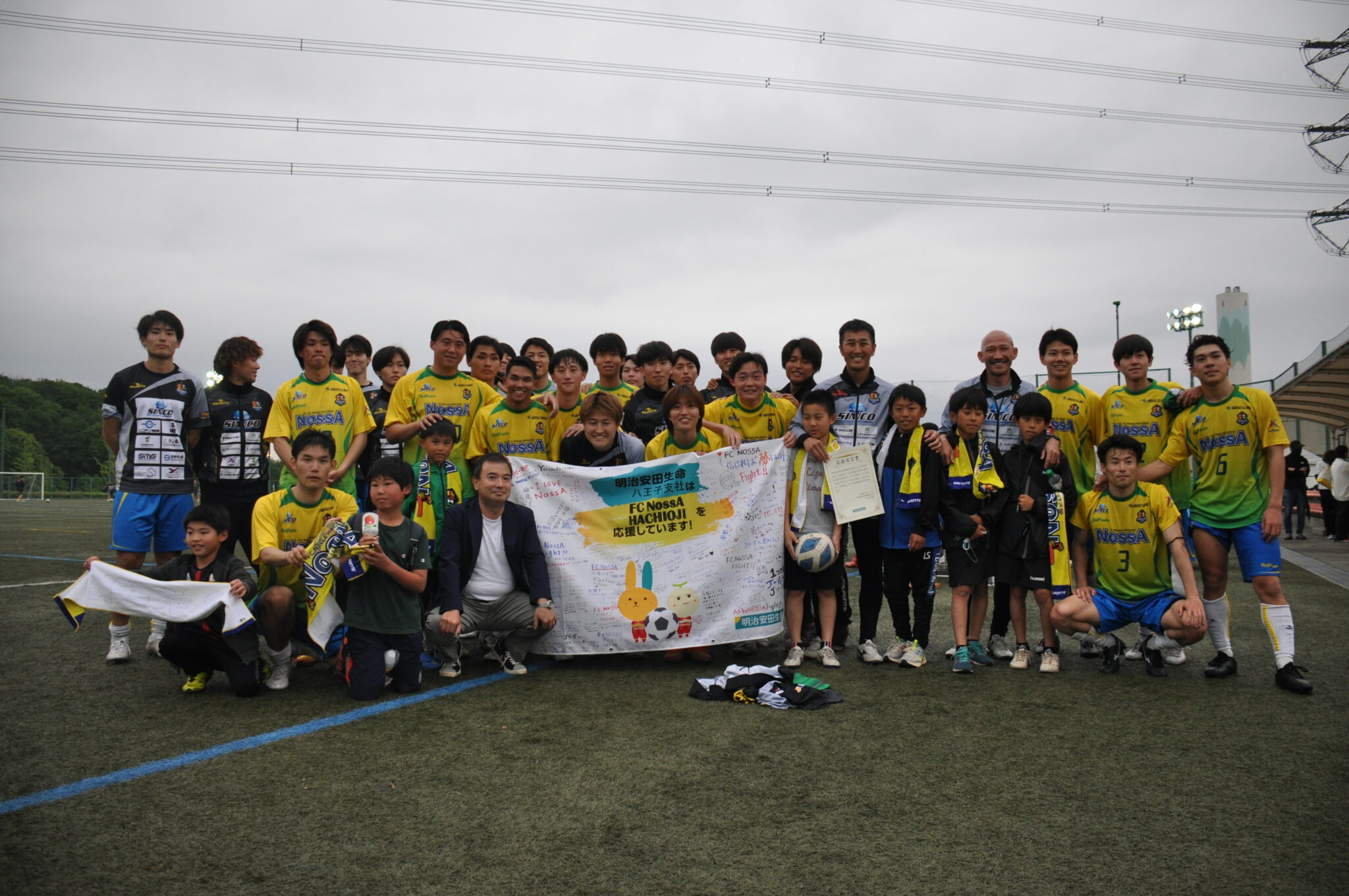 試合終了後は明治安田生命様より横断幕の贈呈式と応援宣言書の賞状の付与式がありました。