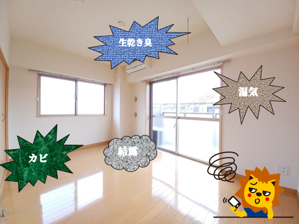 湿気を放っておくとカビの発生増殖の手助けとなり、悪臭を放ちます。