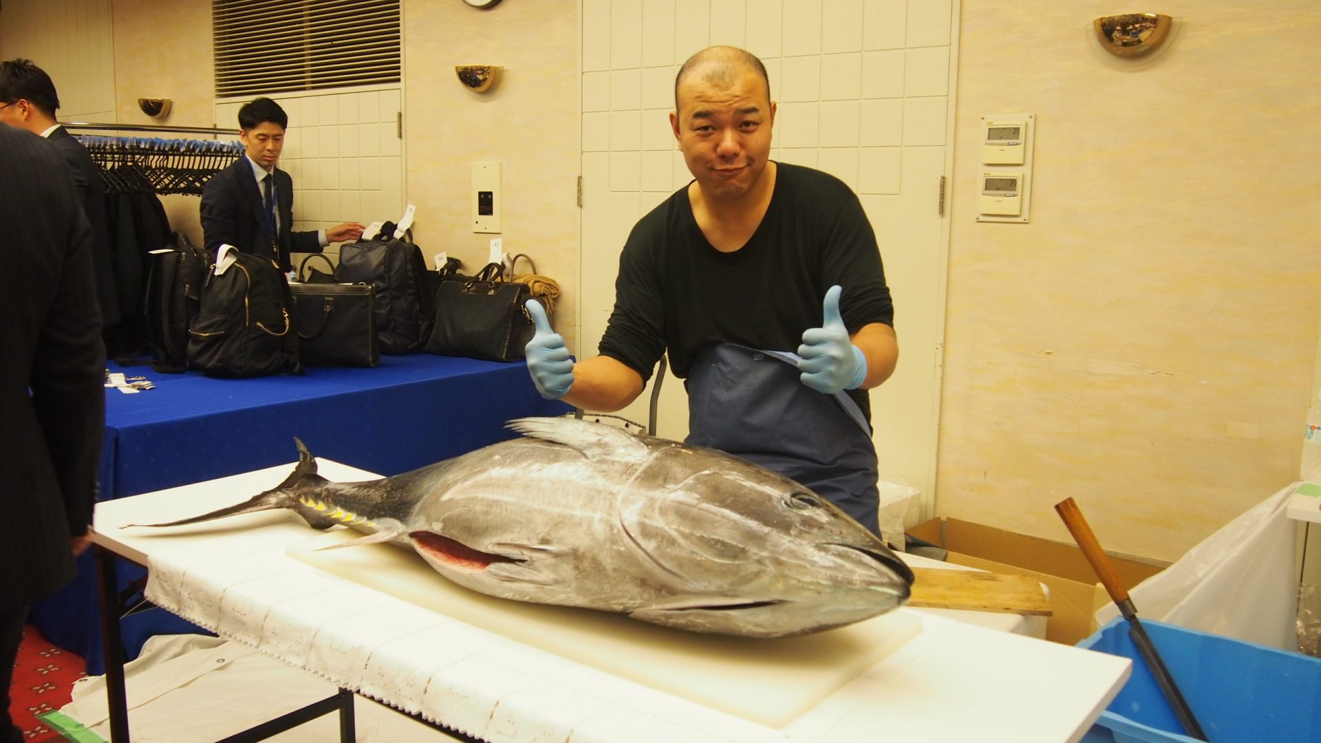 皆様にまぐろ解体ショーとお寿司を堪能していただきました。